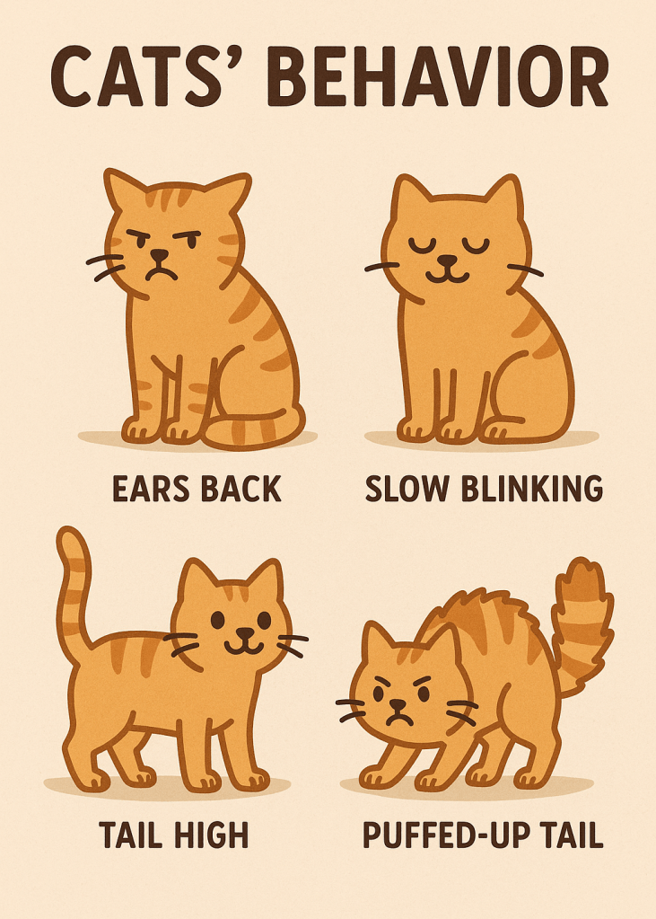 - Description: “Discover what your cat’s behaviors really mean—from purring to tail flicking. Learn how to decode feline body language for a happier pet!”