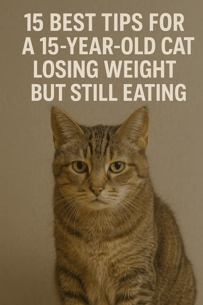 A 15-year-old cat losing weight while still eating should not be dismissed. While aging naturally causes some metabolic slowdown and lean muscle loss, significant or steady weight reduction usually indicates an underlying issue.