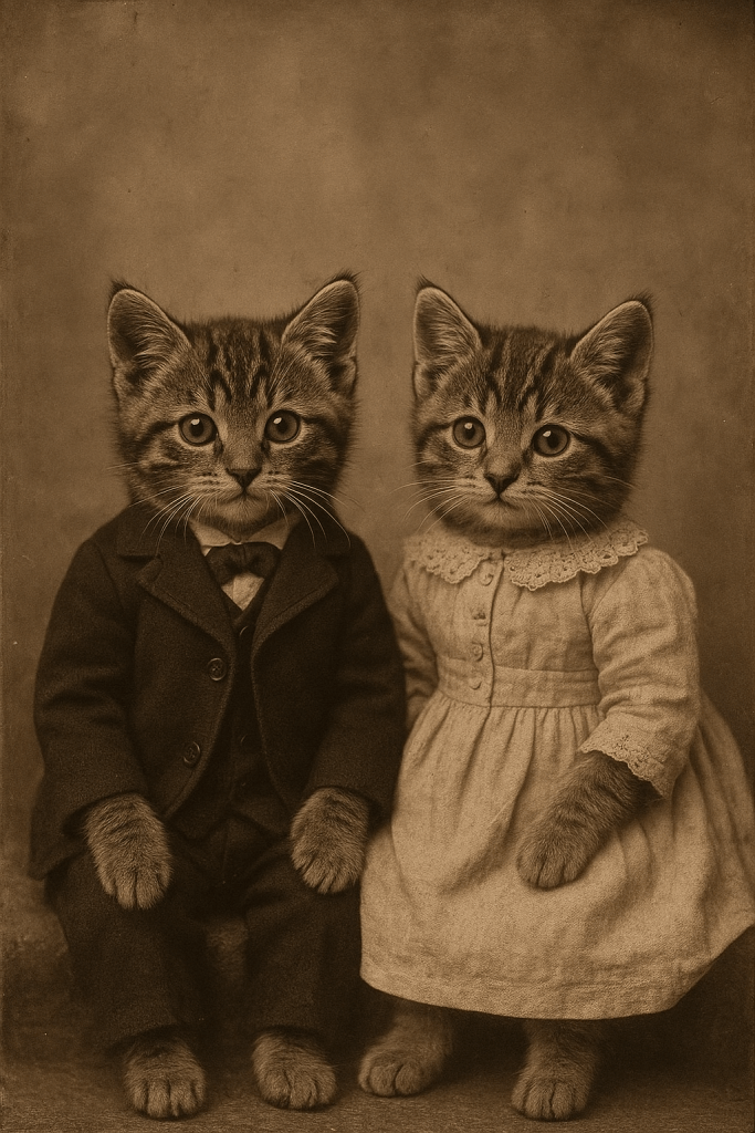 Victorian cat photographs sit at the crossroads of technology, taste, and tenderness. They mark the moment domestic cats were publicly celebrated—paraded at Crystal Palace, posed in Brighton studios, cherished in family albums—and they reveal how new tools changed what (and who) could be pictured. When Kodak put a camera in the parlor, cats followed, stretching from velvet-draped studios to everyday firesides, and ultimately into the endless scroll of the 21st century.