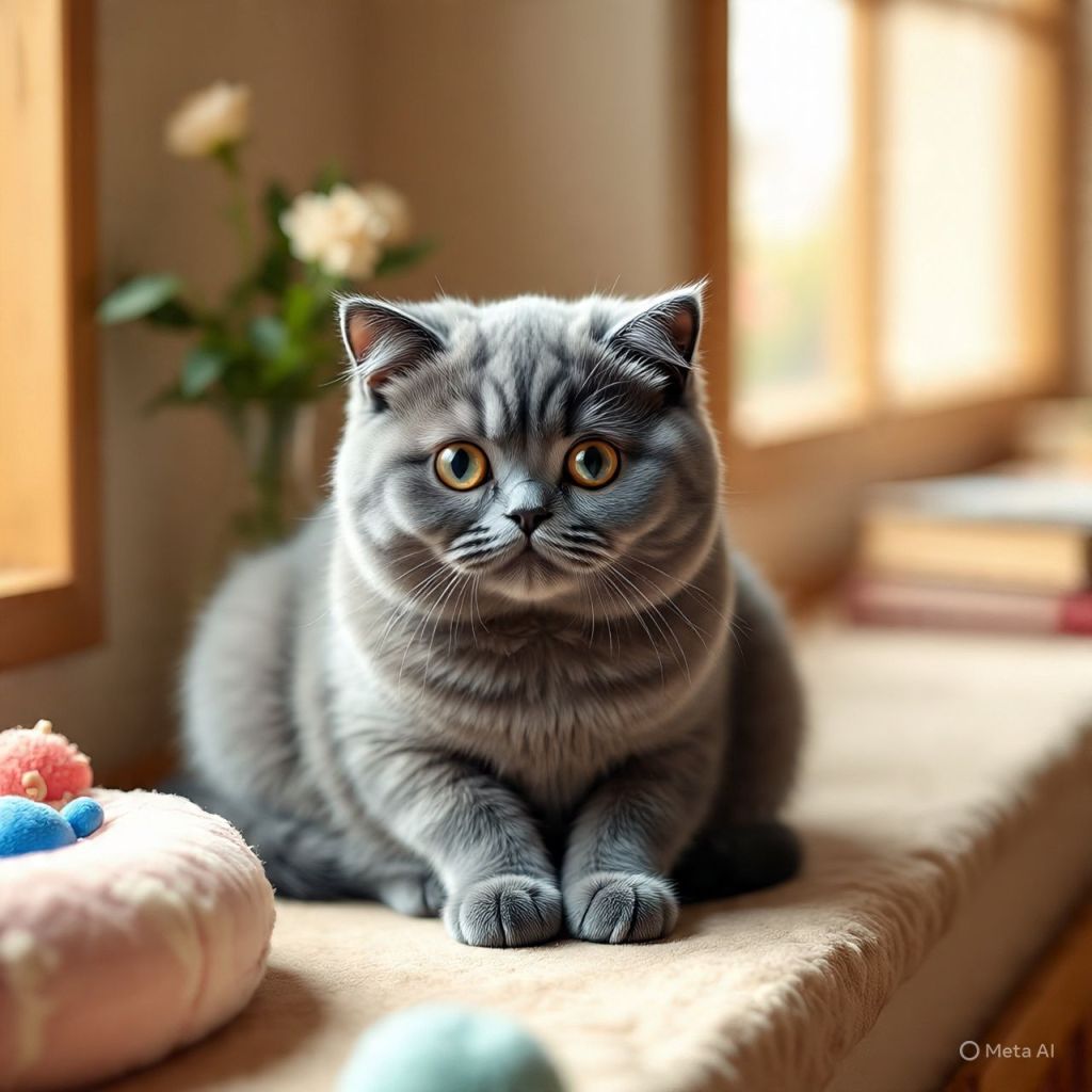 Scottish Folds are sweet-tempered and playful, enjoying indoor safety and comfort. Interactive toys and climbing spaces keep them mentally stimulated.